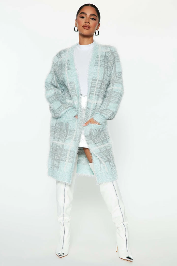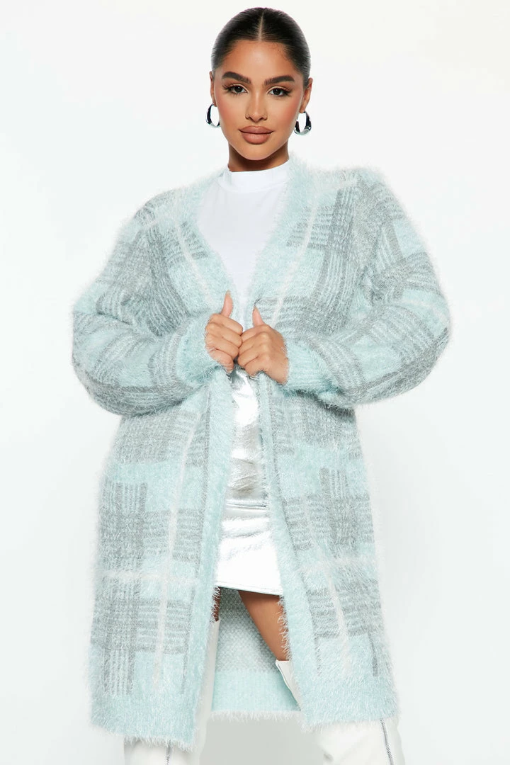 Promo 🔔 Fashion Nova After Class Fuzzy Plaid Cardigan – Blue/combo Cardigans 🧨