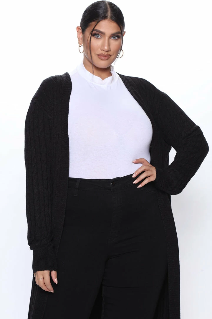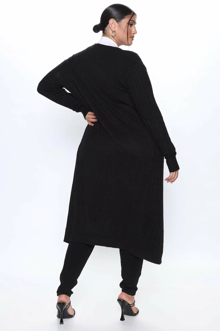 Best Pirce π Fashion Nova Alessandra Cable Knit Duster Cardigan – Black π