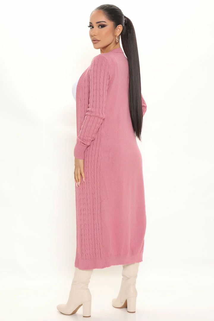 Promo ✨ Fashion Nova Cardigans Alessandra Cable Knit Duster Cardigan – Mauve ⌛