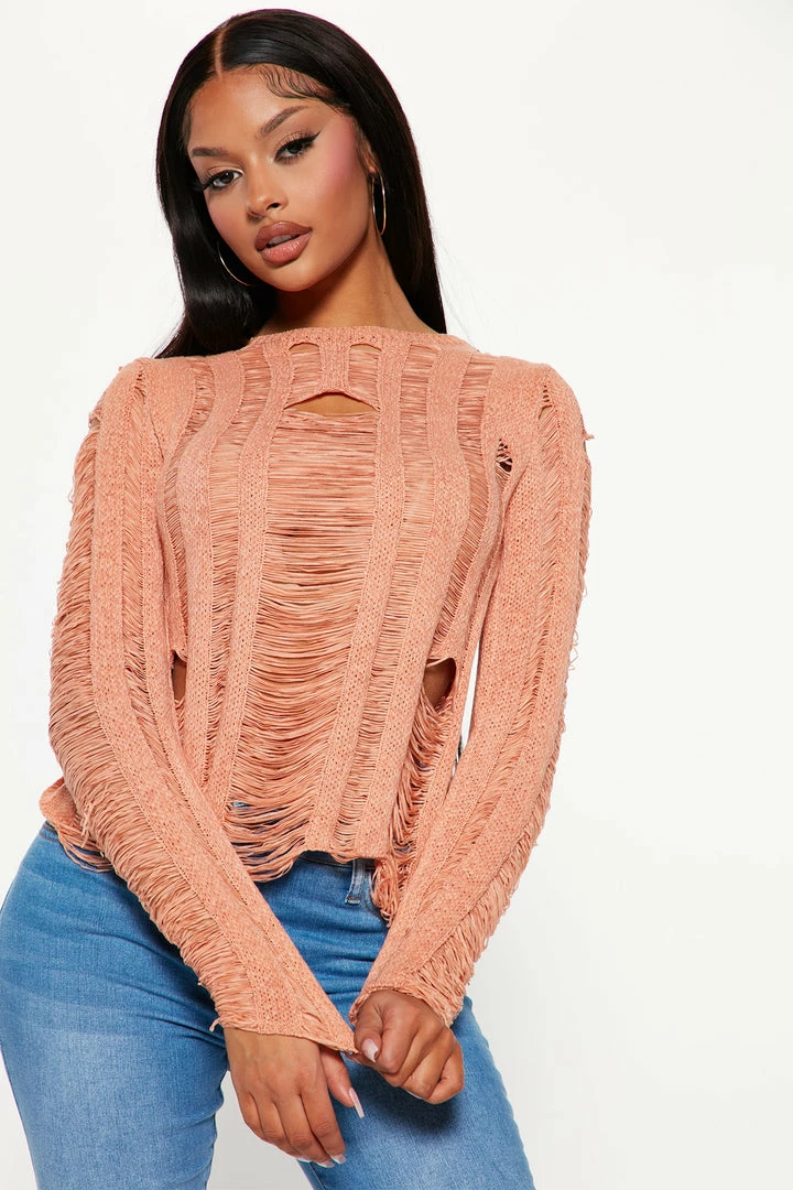 Promo ⌛ Fashion Nova Courtney Destroyed Sweater – Peach Pullovers ✔️