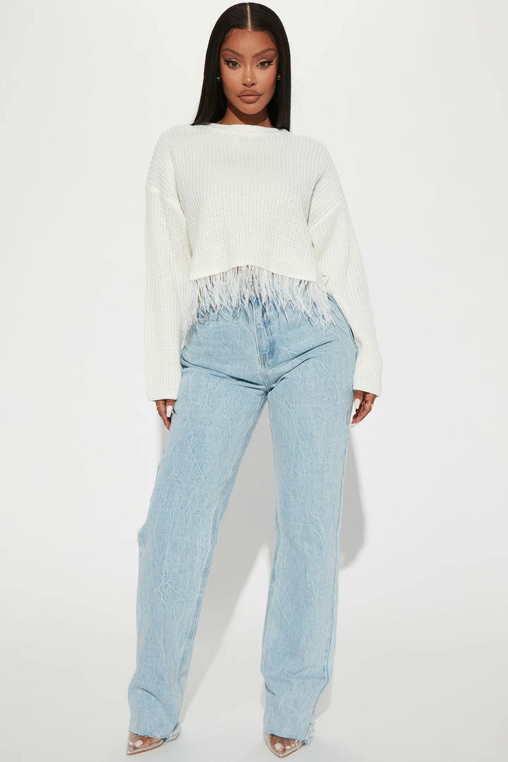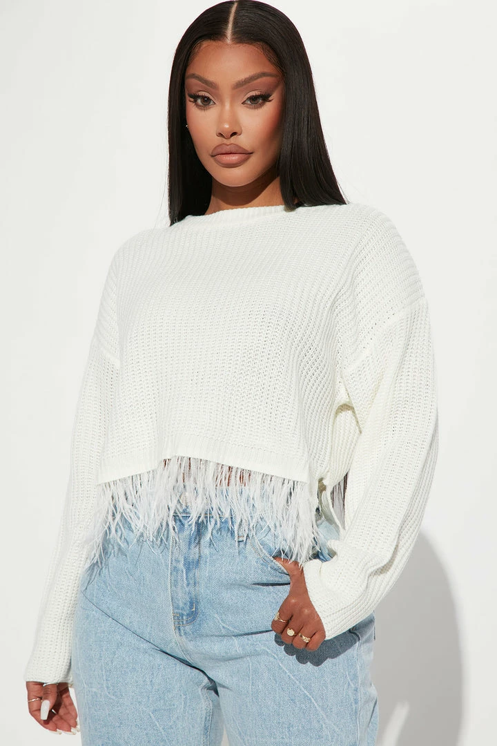 Flash Sale ๐ฅฐ Fashion Nova Feeling Flashy Feather Sweater – Ivory โจ