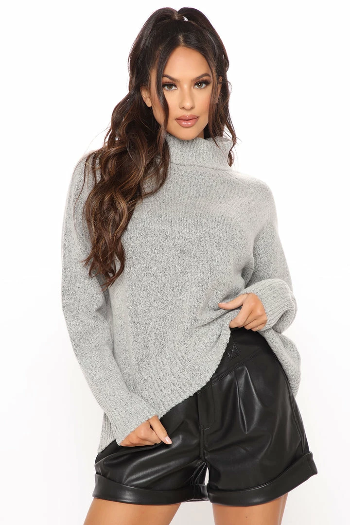 Hot Sale π Fashion Nova Just Roll With It Babe Turtleneck Sweater – Heather Grey π