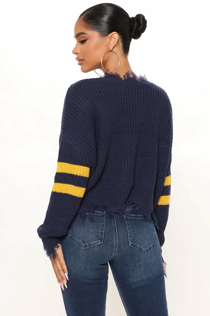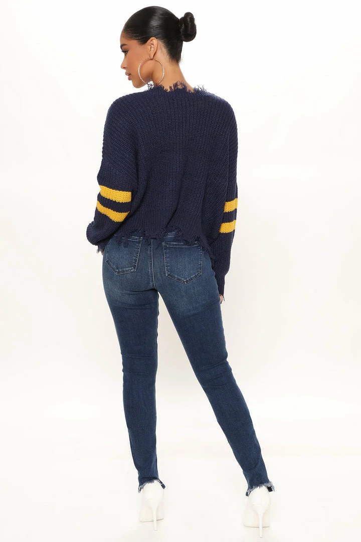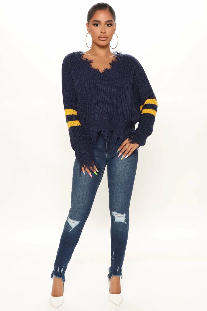Best Pirce π Fashion Nova Keeping You Close Distressed Sweater – Navy π