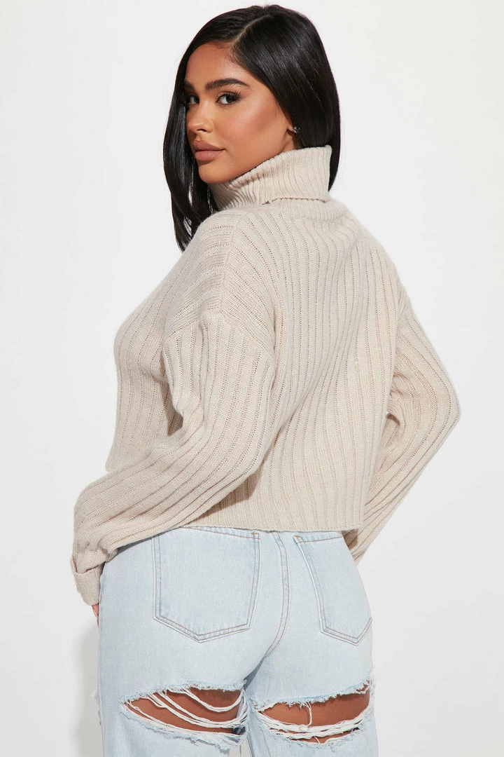 Best deal ✨ Fashion Nova Kitten Soft Rib Turtleneck Sweater – Taupe Pullovers ⭐
