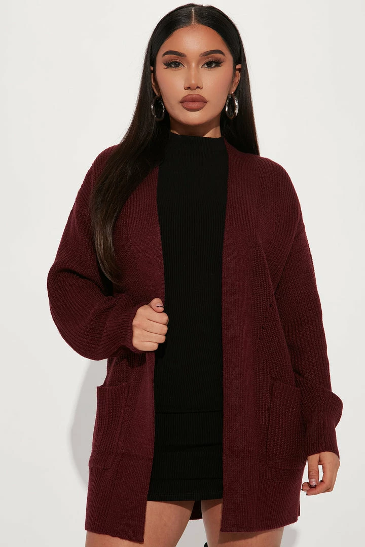 Promo π Fashion Nova Lizzy Cardigan Sweater – Burgundy Cardigans π