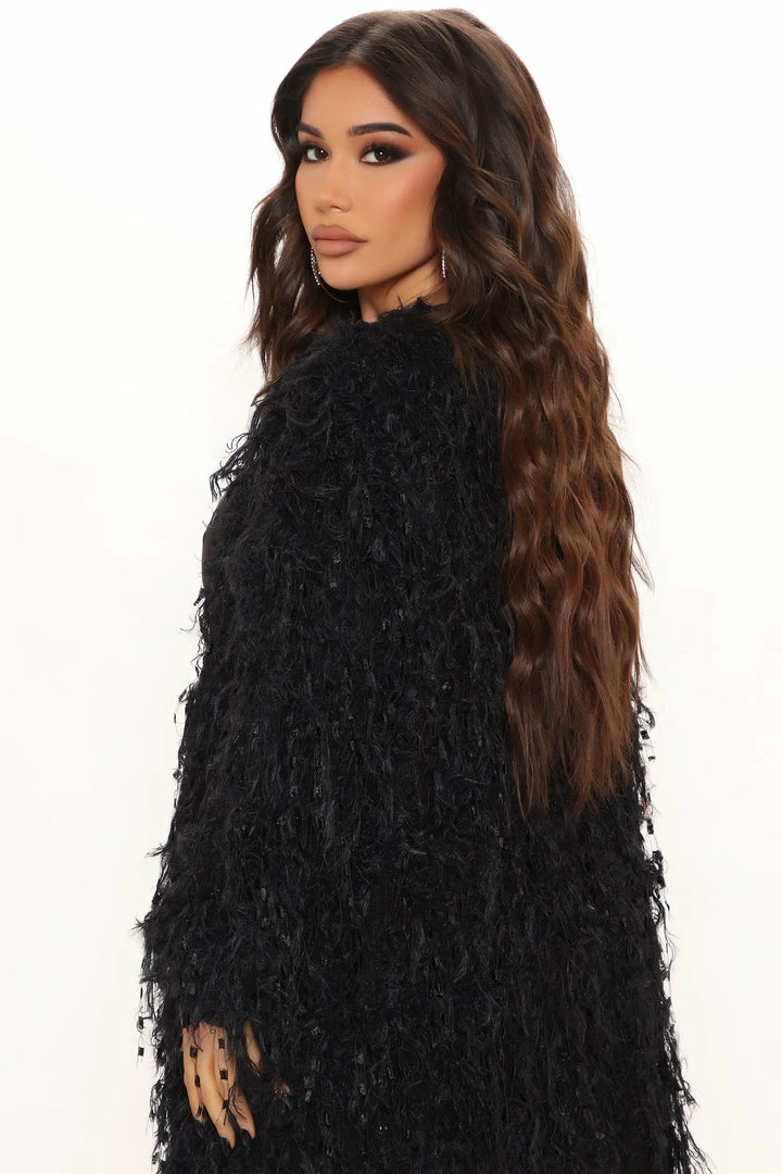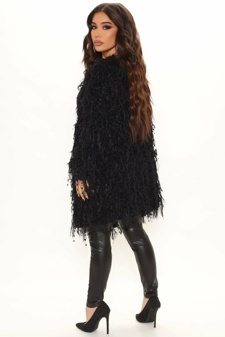 Best Sale 🤩 Fashion Nova Not An Issue Feathered Cardigan – Black 😍