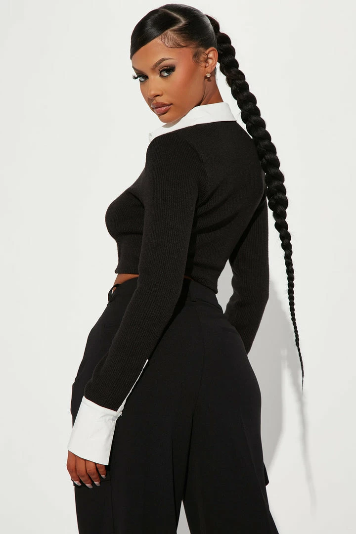 Promo βοΈ Fashion Nova Orion Poplin Collar Cropped Sweater – Black/White π