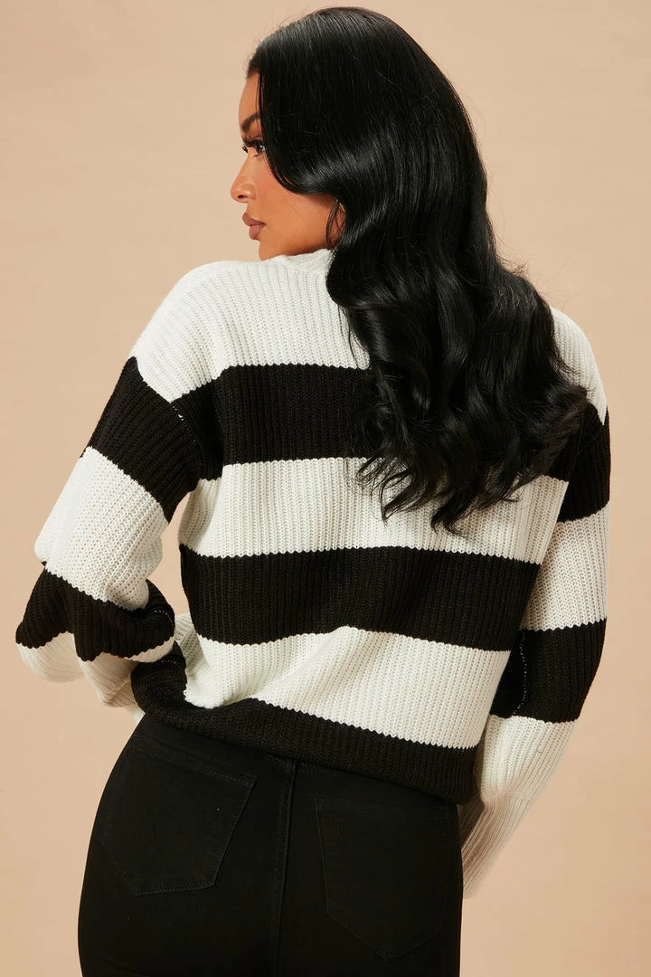 Coupon ๐ฏ Fashion Nova Pullovers Autumn Dreams Striped Sweater – Black/White ๐ฏ