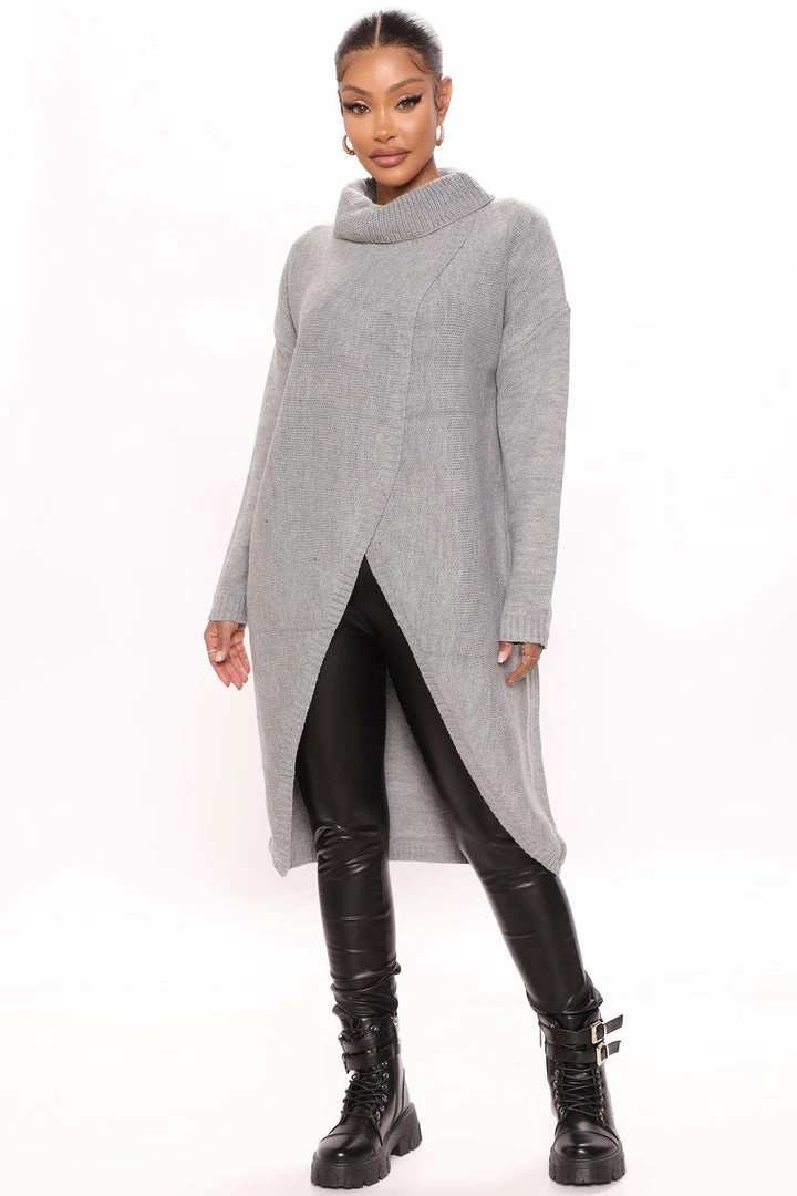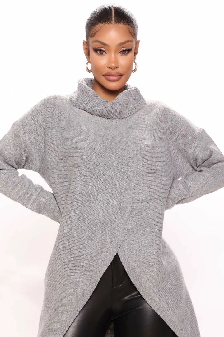 Best Sale ❤️ Fashion Nova Pullovers By My Side Turtle Neck Sweater – Heather Grey ⌛