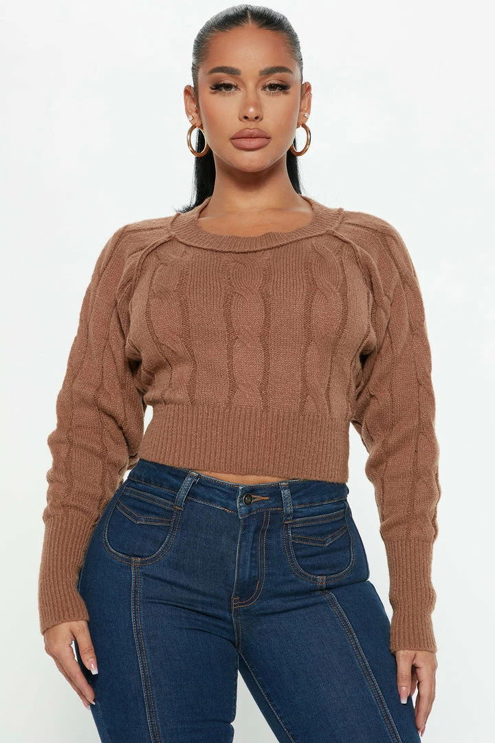 Best Pirce π Fashion Nova Pullovers Charade Cable Knit Sweater – Mocha π