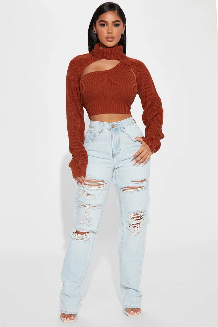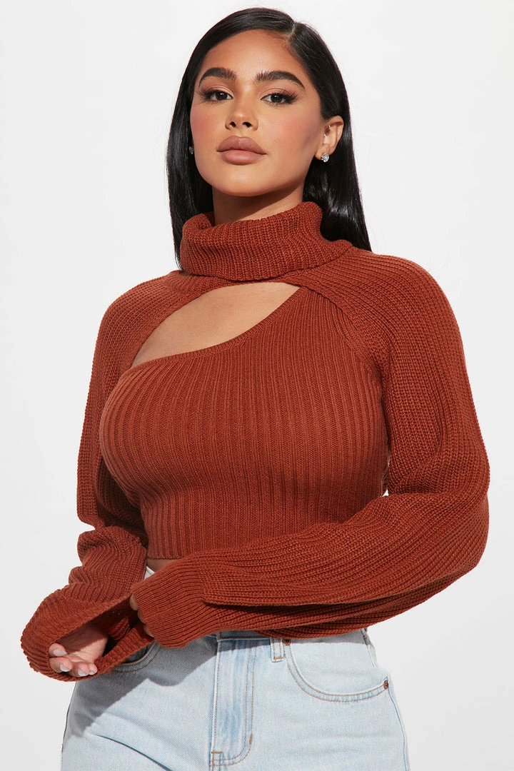 Brand new 𧨠Fashion Nova Pullovers Feel It Out Turtleneck Sweater Set – Cognac π