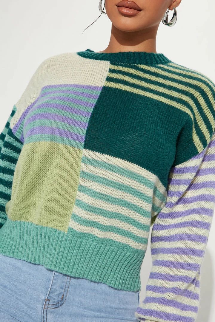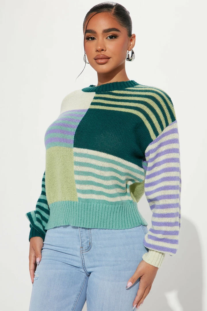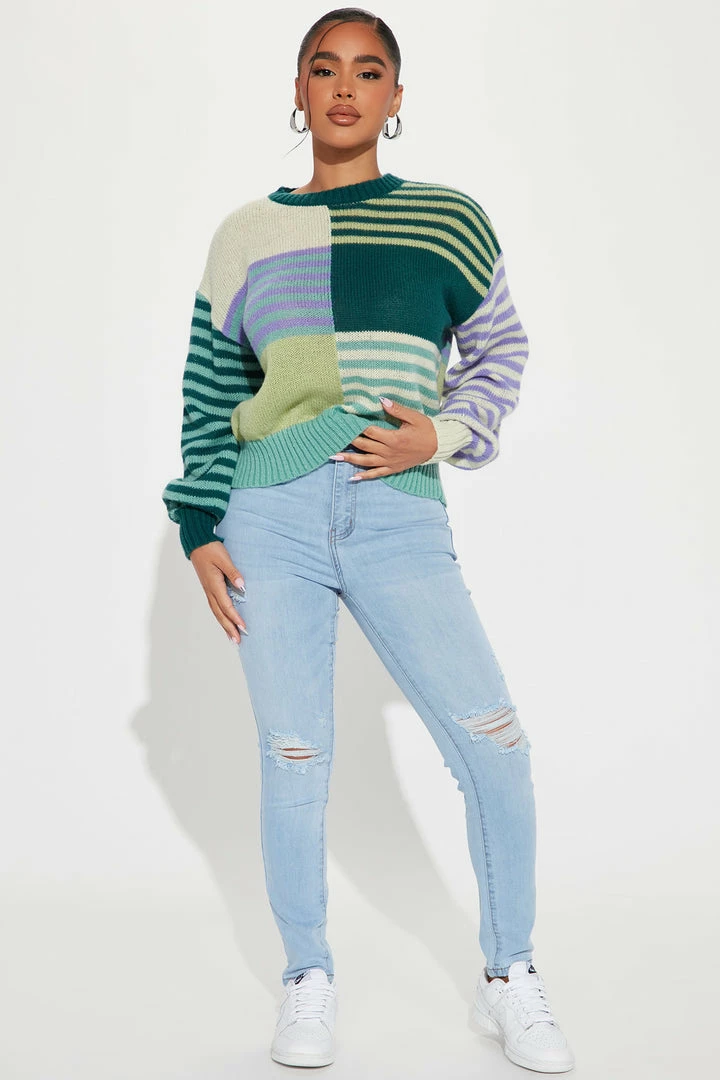 Wholesale ⌛ Fashion Nova Pullovers In The Mix Striped Colorblock Sweater – Green/combo 👍