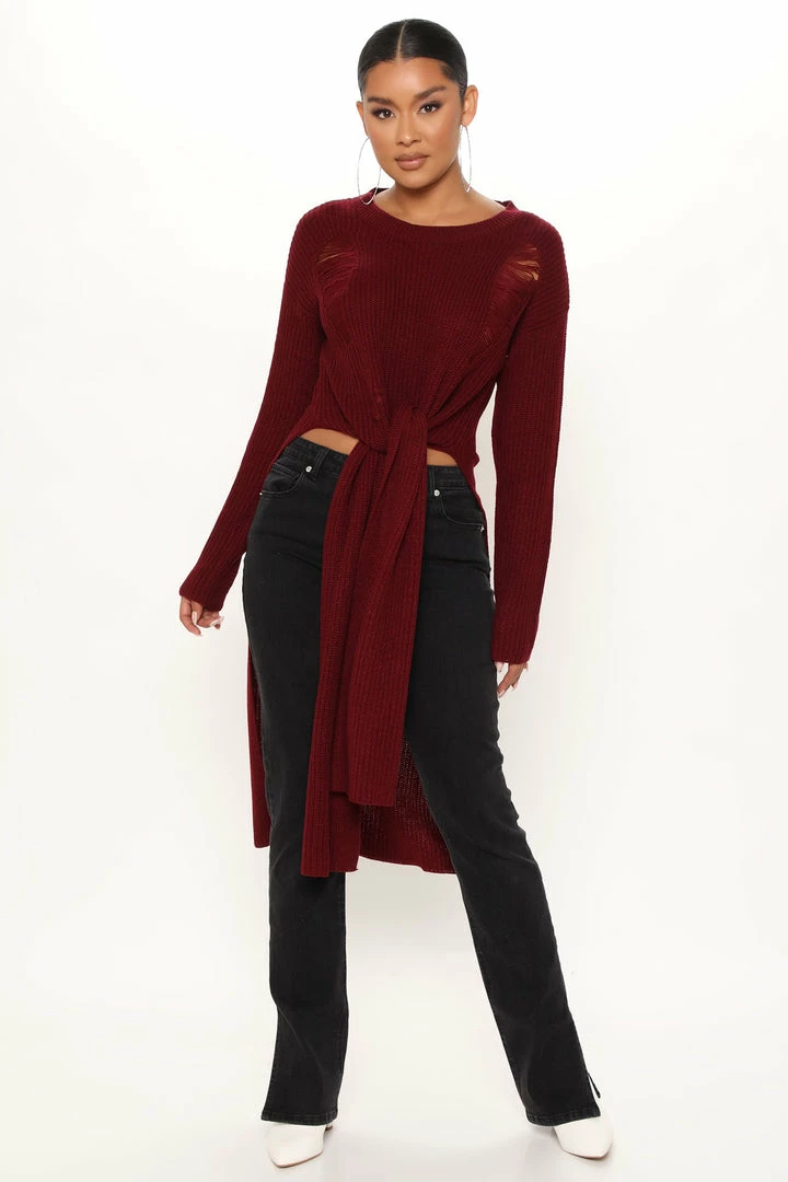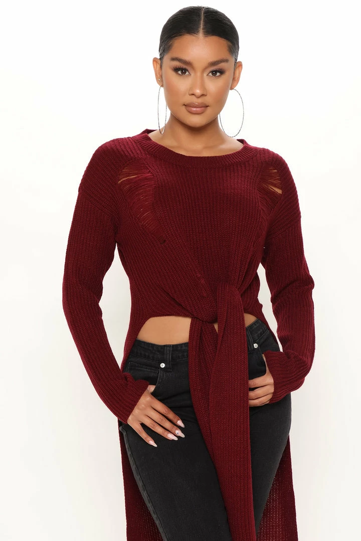 Best Pirce 🔔 Fashion Nova Pullovers Kara Tie Front Sweater – Burgundy 🤩