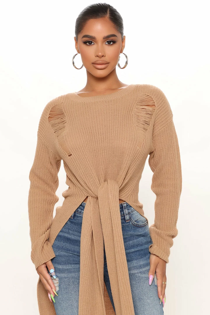 Brand new π Fashion Nova Pullovers Kara Tie Front Sweater – Tan π§¨