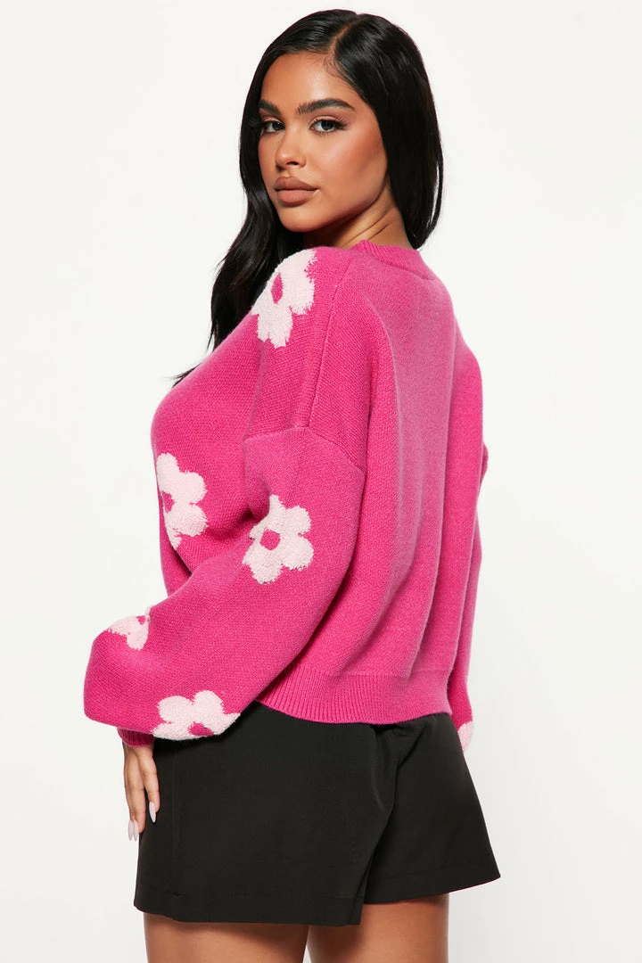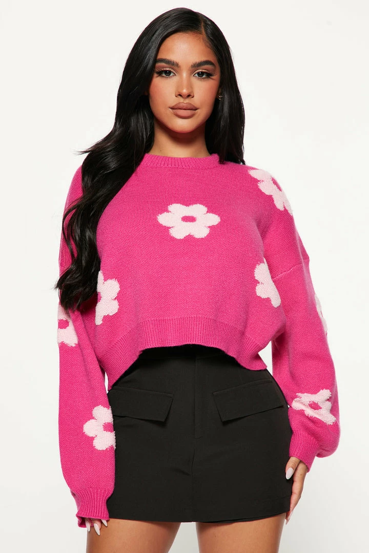 Coupon π Fashion Nova Pullovers Lazy Daisy Sweater – Fuchsia/combo π―