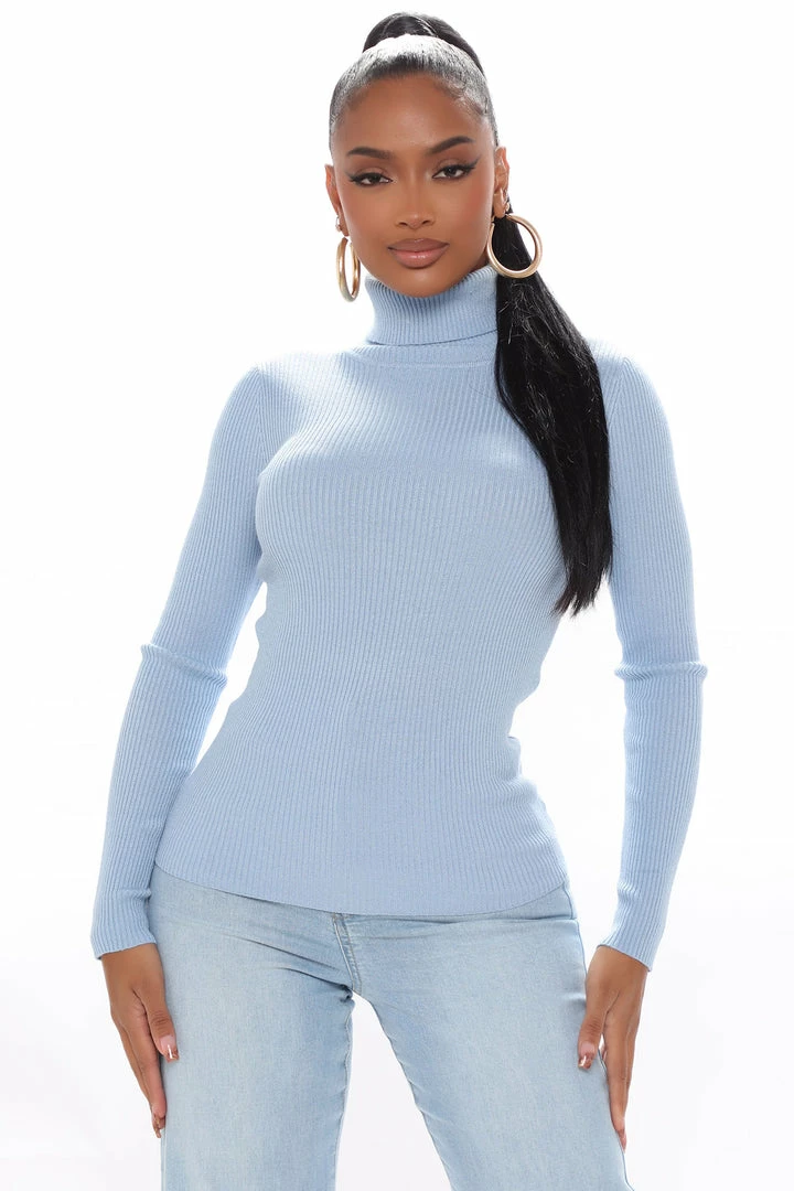 Best Sale ๐ Fashion Nova Pullovers Tara Turtle Neck Sweater – Light Blue ๐