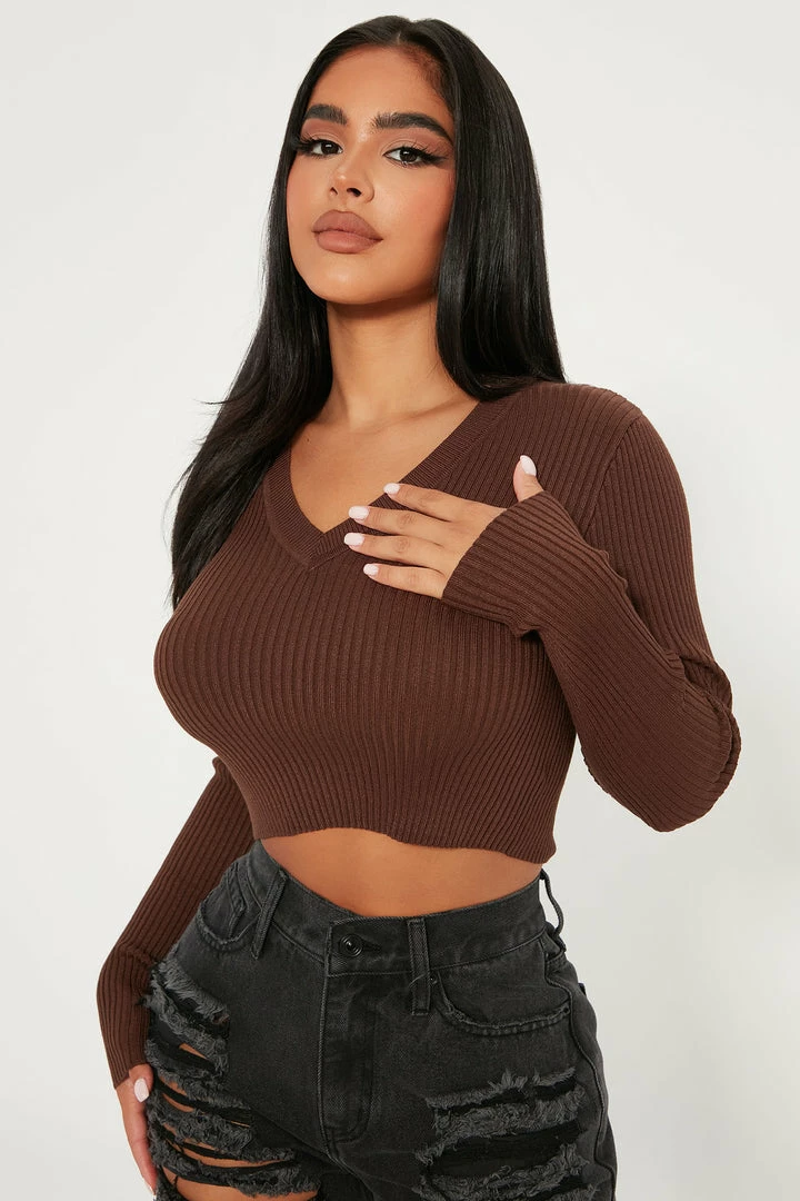 Best reviews of ❤️ Fashion Nova Sheila Ribbed Crop Sweater – Chocolate Pullovers 🔔