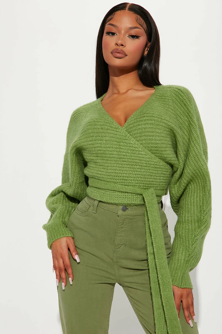 Discount π Fashion Nova Under Wraps Rib Knit Sweater – Green Pullovers β€οΈ