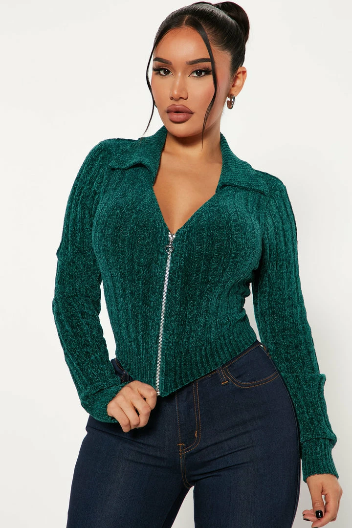 Hot Sale β€οΈ Fashion Nova Zip It Ribbed Sweater – Green π